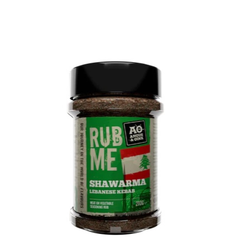 De Angus and Oink Shawarma Rub zit vol smaken uit het Midden-Oosten. De specerijen uit India, Noord-Afrika en Europa botsen frontaal in deze heerlijke rub. Shoarma is met een burrito een echte wrap-snack. Heerlijk in combinatie met lamsvlees of groenten. Probeer eens een langzaam gegaarde lamsschouder met een plat brood (naan/pita), verse yoghurt, tabouleh en verse granaatappel. Of grill lamskoteletten of lamsschouderkebabs en geniet van de bedwelmende geur om je heen.
