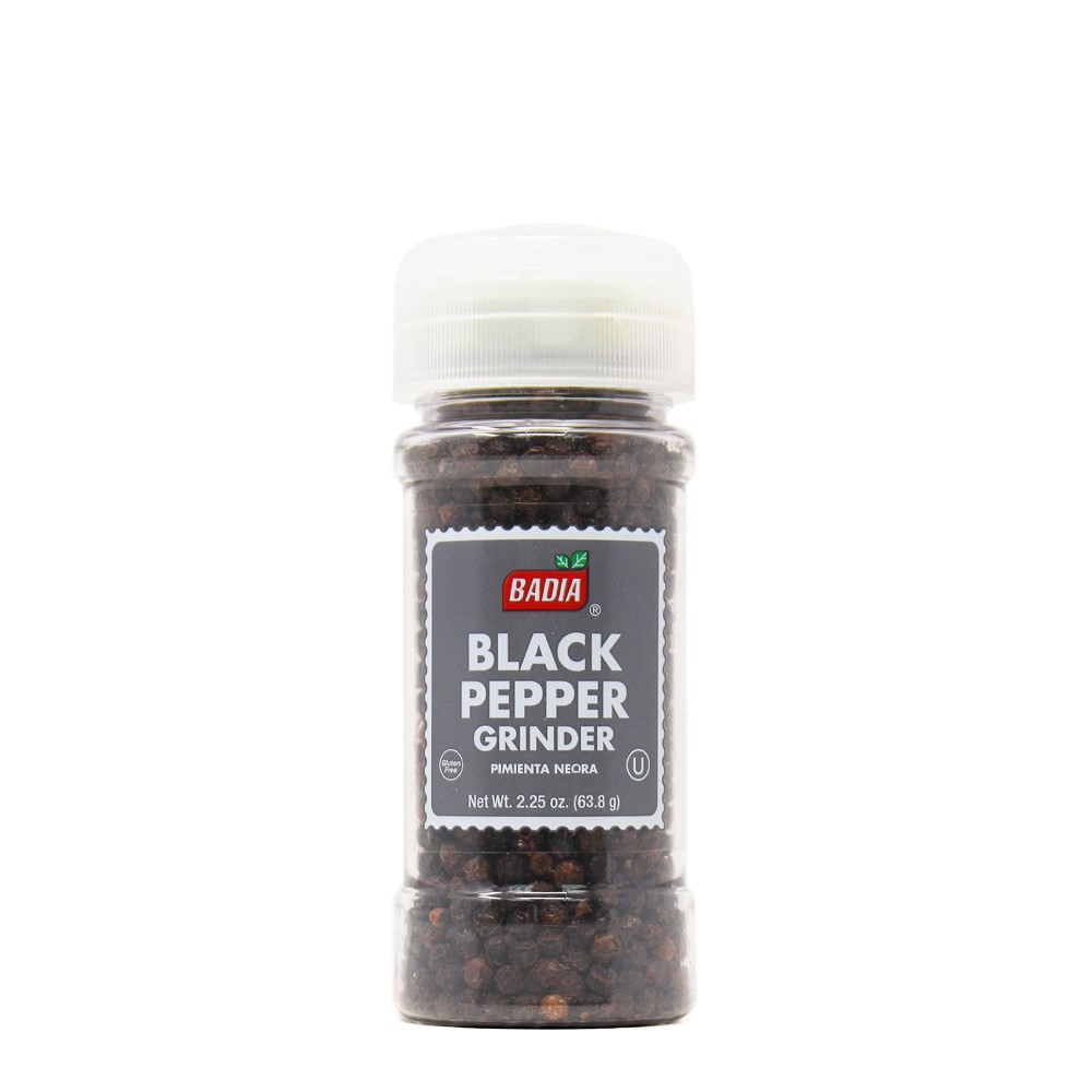 De peper in de Badia Zwarte Peper Molen is de gedroogde, onrijpe vrucht van piper Nigrum L. Deze zwarte peper wordt over het algemeen gemalen en gedroogd in India, Brazilië, Vietnam en Indonesië. De ronde, gerimpelde, bruinzwarte bessen hebben een doordringend, aromatisch aroma en een scherpe, hete smaak. Glutenvrij.