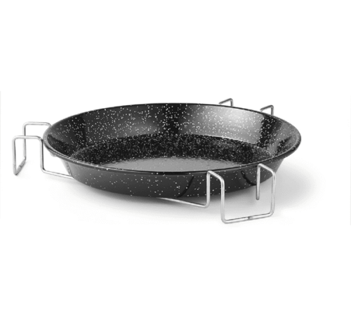 - Materiaal: geëmailleerde pan met RVS houder