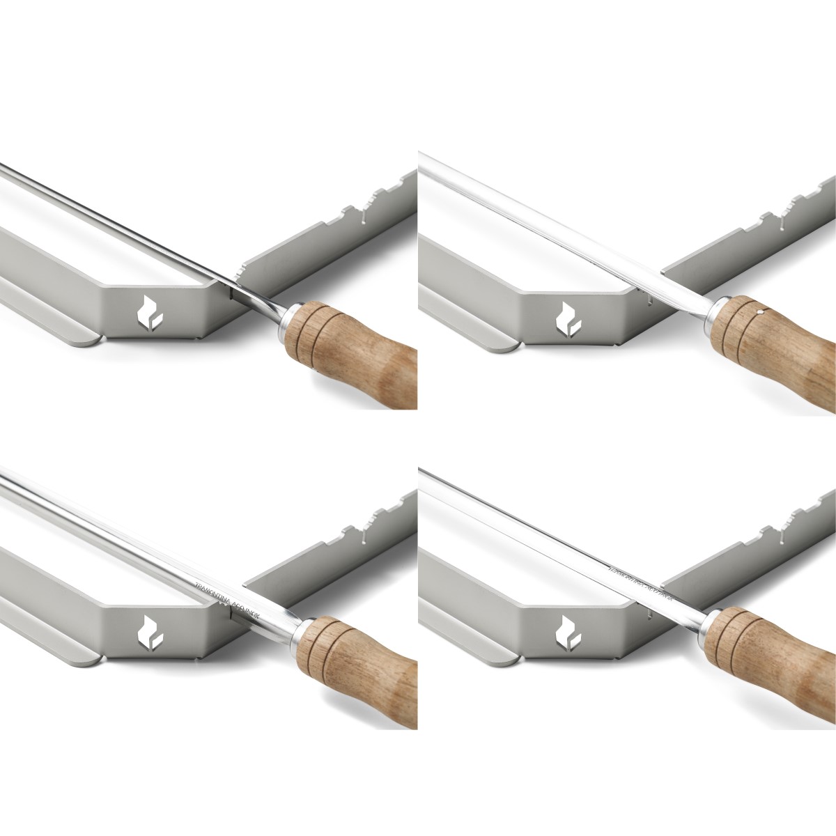 Met het Braaimaster Churrasco Frame RVS kun je grillen op z’n Zuid-Amerikaans. En in combinatie met churrasco spiezen of churrasco vorken maak je de lekkerste dingen klaar. Laat staan wat je allemaal aan tafel kunt presenteren met de verschillende churrasco accessoires. Leg eenvoudig de spiezen op het frame en rooster het vlees boven de kooltjes van de braai. Het frame heeft slimme inkepingen om zo je spies telkens een kwartslag te draaien zonder dat deze dan terug draait. Hierdoor heb je alle ruimte om je creativiteit, tijdens het braaien, te gebruiken. Hierdoor wordt je Braai nog veelzijdiger, dan dat hij al was.