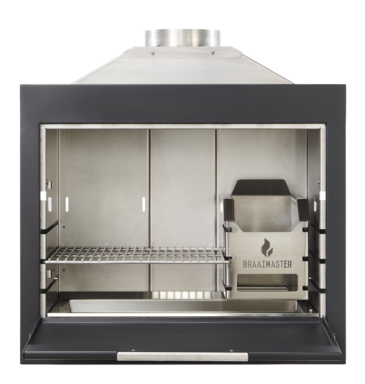 De Braaimaster Inbouw Single Black is een aanwinst in elke buitenkeuken of veranda. Met de Braaimaster kunt u koken zoals men dat al generaties doet in zuid-Afrika, en dat is met open vuur waarbij u zelf uw kolen maakt met de firebox. En maak de sfeer compleet door met het haardrooster de braai om te toveren tot een buitenhaard. Dit model kan worden ingebouwd onder bijvoorbeeld een veranda of buitenkeuken. Eveneens zijn er diversen andere accessoires voor de Braaimaster braai’s te krijgen. Er zijn talloze mogelijkheden met deze single black inbouw braai. En zo kunt u uw eigen buitenkeuken creeën met uw persoonlijke wensen.