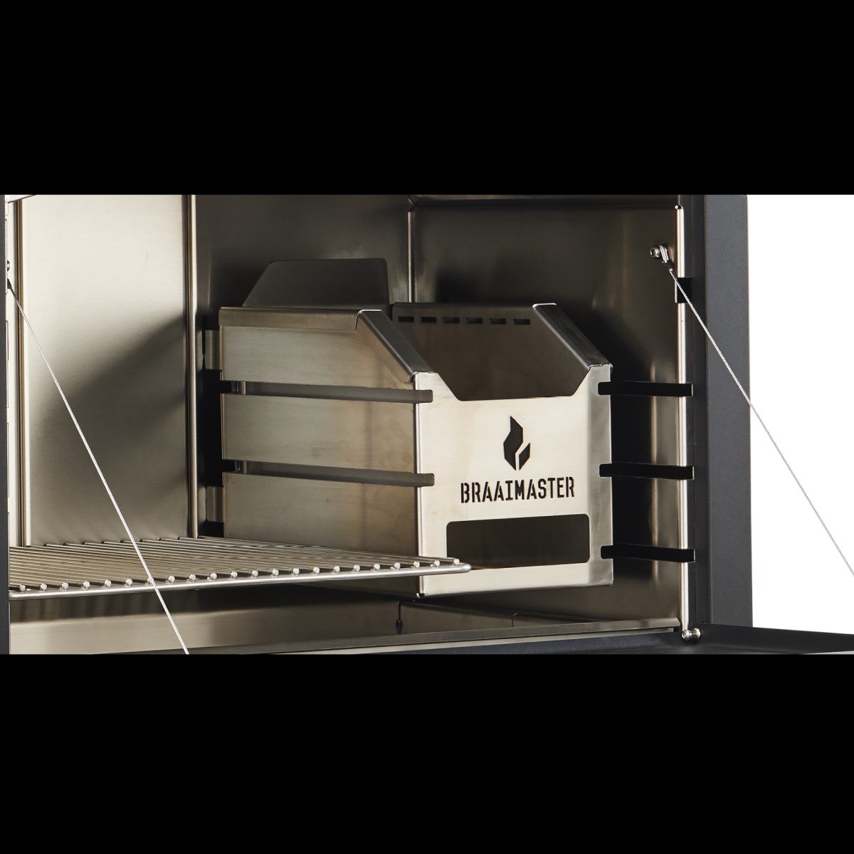 - De firebox zorgt voor een constante aanvoer van gloeiende kolen. Ontworpen voor een optimale luchttoevoer voor een vuur zonder rook.