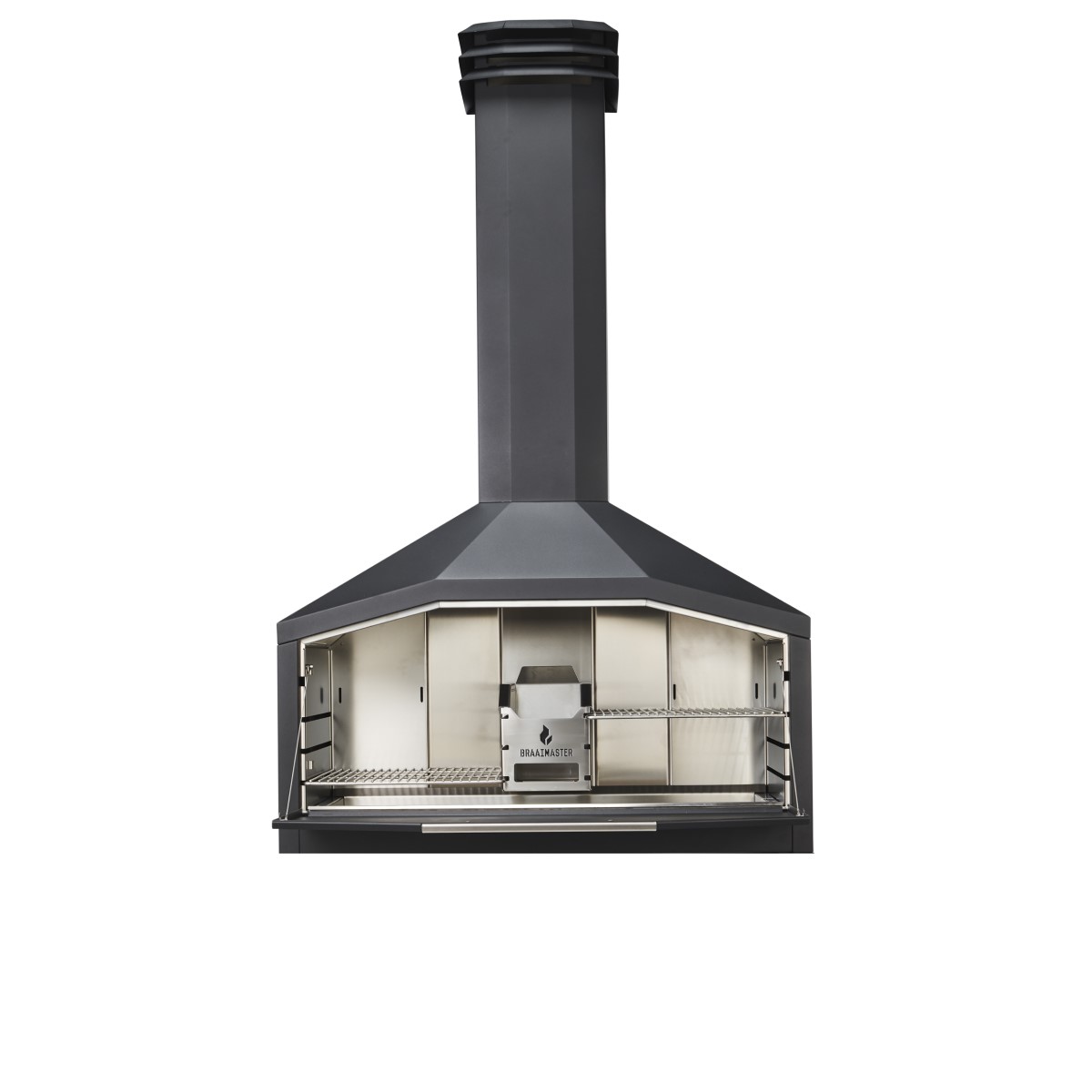 - Inclusief: schoorsteen, geïntegreerde trekkap, kolenmaker, kolenpan, RVS grillrooster, RVS pook, RVS haak