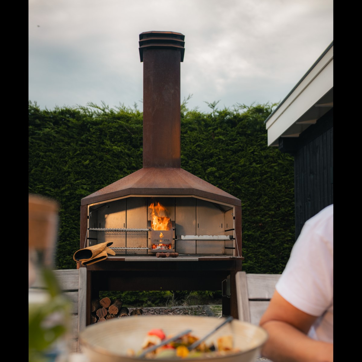 - Duurzame materialen. Een binnenwerk volledig van RVS bestand tegen hoge temperaturen. Het buitenwerk van zwart gepoedercoat RVS of CORTEN staal.