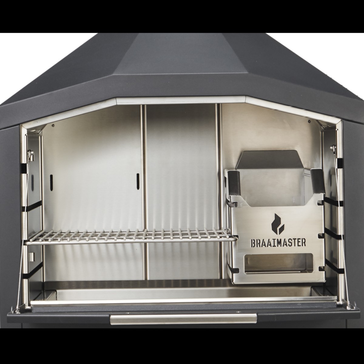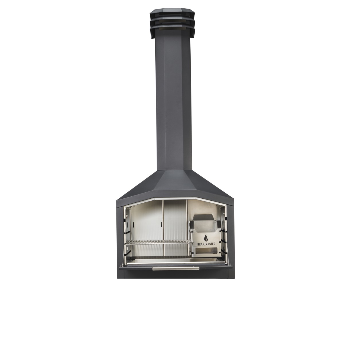 - Inclusief: schoorsteen, geïntegreerde trekkap, kolenmaker, kolenpan, RVS grillrooster, RVS pook, RVS haak