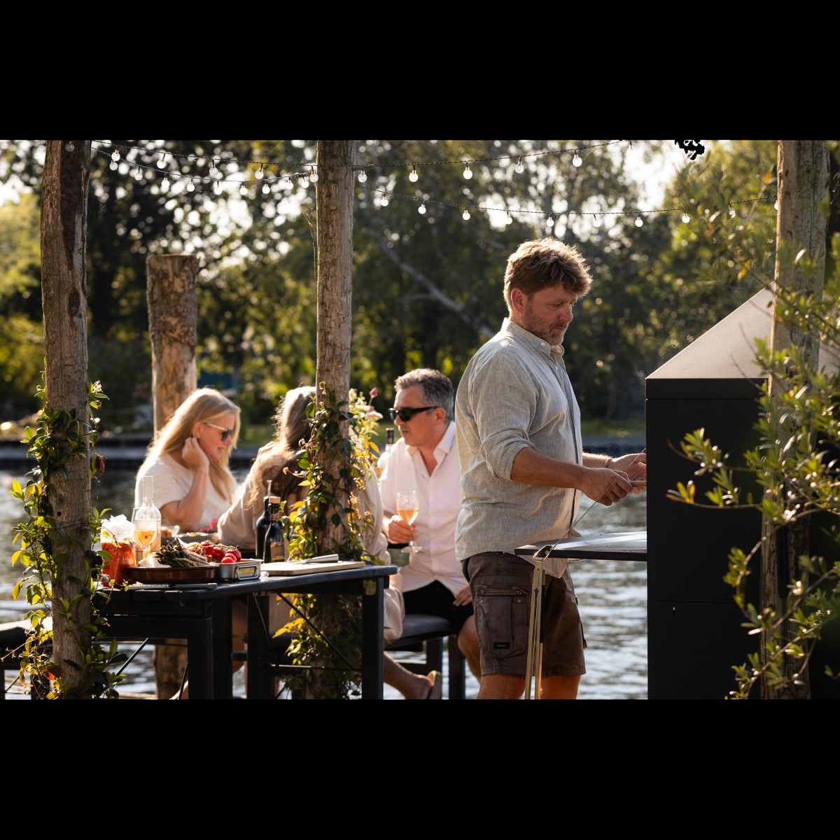 De Braaimaster Vrijstaand Single Black is een aanwinst voor elke tuin of veranda. Met de Braaimaster kunt u koken zoals men dat al generaties doet in zuid-Afrika, en dat is met open vuur waarbij u zelf uw kolen maakt met de firebox. En maak de sfeer compleet door met het haardrooster de braai om te toveren tot een buitenhaard. Dit model kan zowel vrijstaand in de tuin worden neergezet of ingebouwd worden onder bijvoorbeeld een veranda. Eveneens zijn er zijtafels te verkrijgen en diversen andere accessoires voor de Braaimaster braai’s. De braai kan zowel vrijstaand in de tuin worden neergezet op een eigen onderstel of ingebouwd worden onder bijvoorbeeld een veranda. Talloze mogelijkheden zijn beschikbaar met deze opstelling. En zo kunt u uw eigen buitenkeuken creeën met uw persoonlijke wensen.