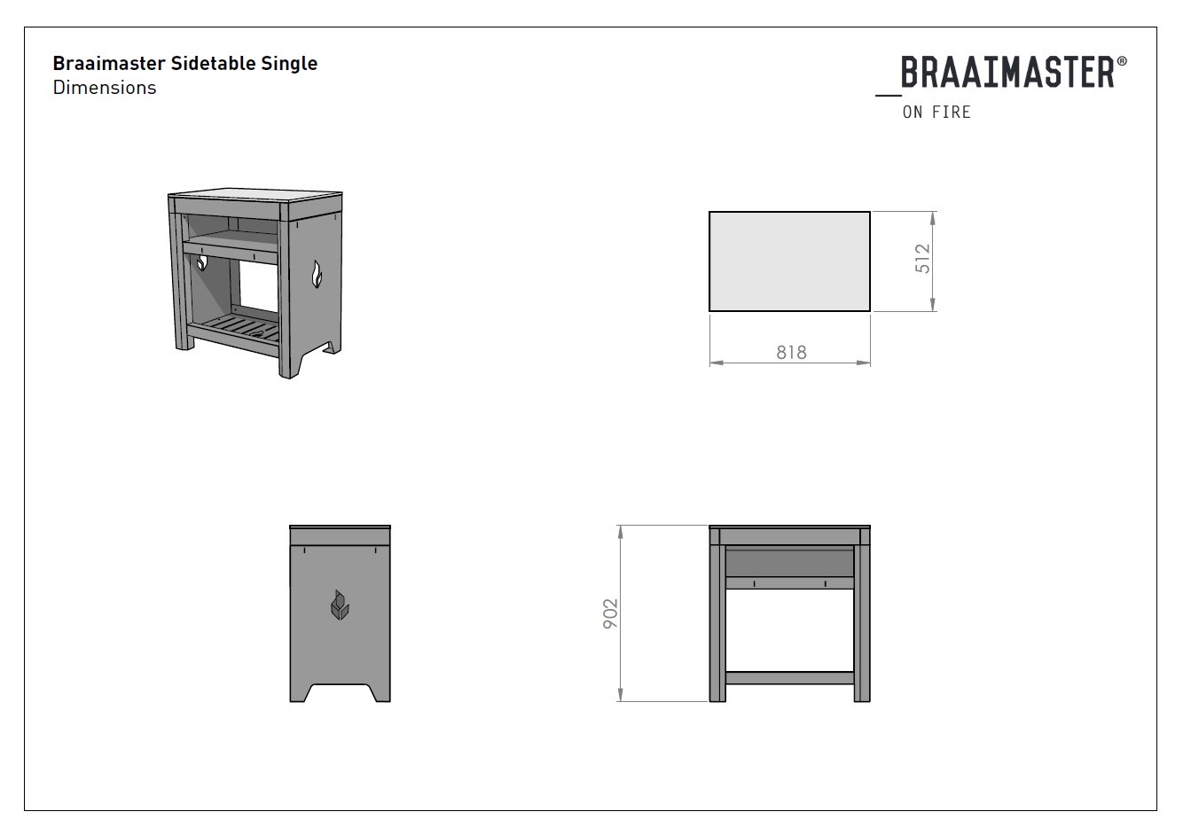 Braaimaster Zijtafel Single Black Antraciet Blad