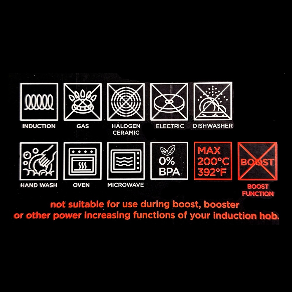 • Let op! Alleen geschikt voor inductie kookplaten, niet voor keramische/ halogeen kookplaten