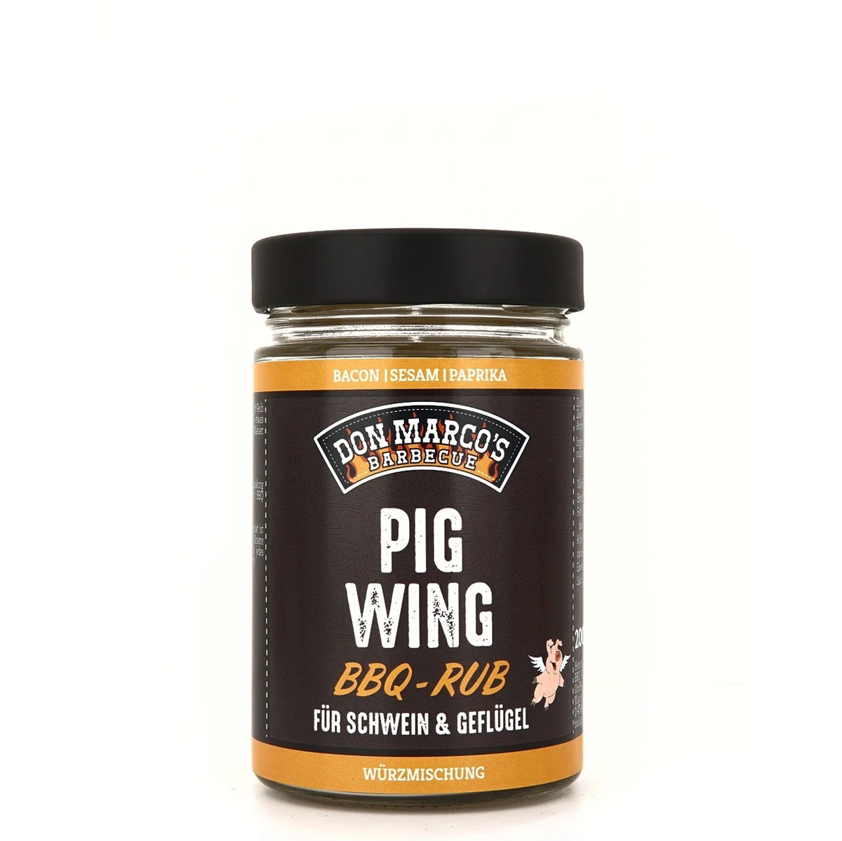 Don Marcos PigWing Seasoning is een pittige en smaakvolle rub met een hint van bacon. De rub is speciaal ontwikkeld voor kippenvleugels, maar combineert ook erg goed met andere stukken kip, gevogelte en varkensvlees. Een super combinatie met bijvoorbeeld je beer can chicken, of om je Pulled pork meer diepgang te geven. “Don” Marco Greulich, wereldkampioen barbecueën en een van de meest succesvolle barbecueërs in Europa met meer dan 40 titels op zijn naam. Neemt je mee in de prachtige wereld van de barbecues. Als eerste Europese producent van barbecue-rubs ontwikkelt hij kruidenmengsels waarmee iedereen heerlijke gerechten kan maken op de barbecue. Volgens het motto: van de barbecueër voor de barbecueër.