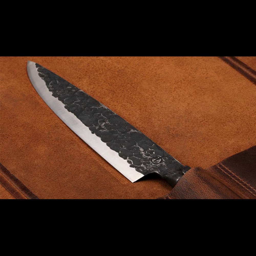 Om zo lang mogelijk te kunnen genieten van je messen is het belangrijk deze goed te onderhouden en op te bergen. Stop de messen van Forged dan ook nooit in de vaatwasser maar was het af met warm water en droog het goed af. Wanneer je de messen zonder bescherming in de keukenlade zou leggen, zouden ze al snel bot worden en verslijten. Daarnaast heb je natuurlijk de kans om jezelf te snijden wanneer ze los in de keukenlade liggen. Daarom adviseren wij om de messen op te bergen met de bijpassende lederen hoezen van Forged. De verschillende maten hoezen zijn voor alle soorten messen in de drie verschillende series te gebruiken. Ze zijn niet alleen functioneel maar zien er ook nog eens heel stoer uit. Ze zijn gemaakt van prachtig donkerbruin leer en afgewerkt met robuuste zwarte accenten. Mooi en functioneel!