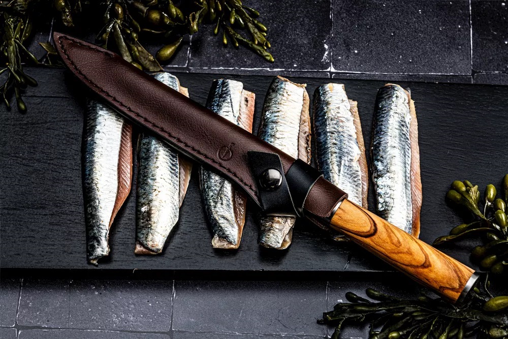 Bescherm je Forged Visfileermes met een Forged Leren Hoes. Een lederen mesbeschermer voorkomt dat je het lemmet van je mes beschadigt als je hem vervoert of in de lade bewaart waar hij met andere keukenhulpjes in contact komt en bot kan worden. Buiten dat je je mes beschermt, bescherm je natuurlijk ook jezelf. Het helpt je te voorkomen dat je jezelf in je vingers snijdt. De hoezen zijn eenvoudig in gebruik, je schuift het mes er in en doet de zwart leren wikkel eromheen en drukt hem vast.