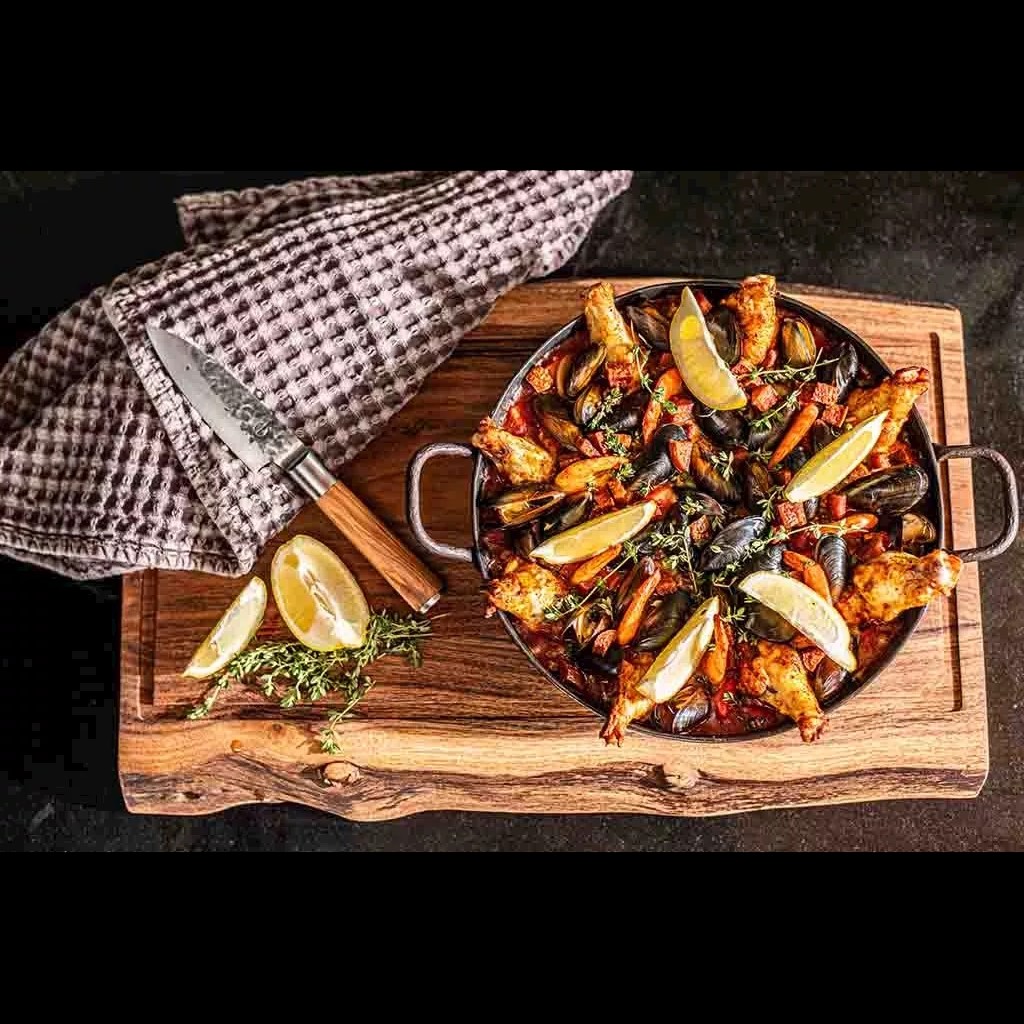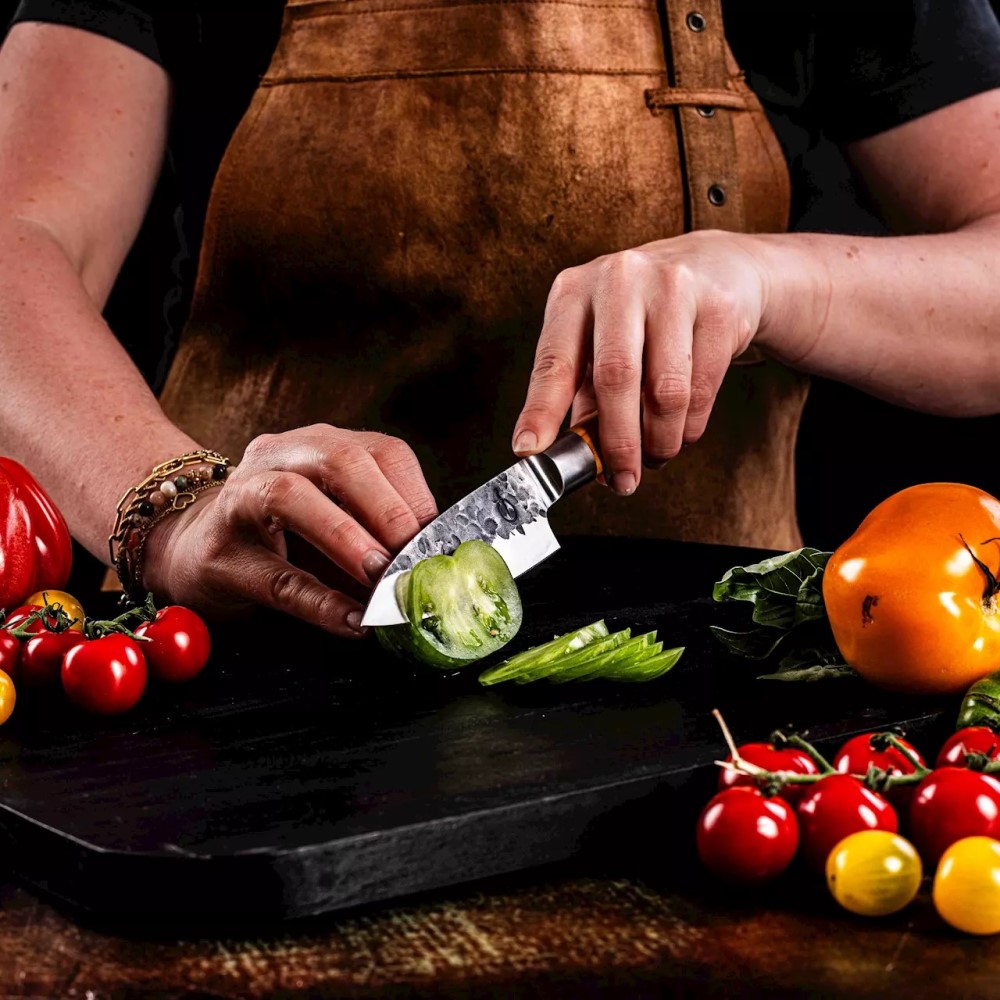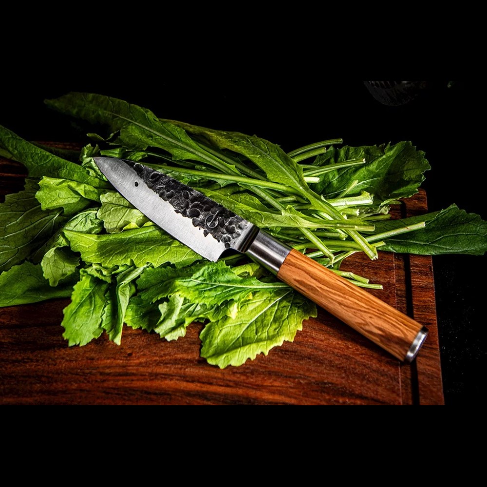 De perfecte mix van Japanse finesse en Europese veelzijdigheid. Culinaire creativiteit met het Forged Olive Petty mes 11 cm. Gesmeed uit hoogwaardig 440c staal en met een rockwell hardheid van 58, is dit mes een ware meester in de keuken. Het petty knife is jouw betrouwbare metgezel voor precisiewerk, van het schillen van groenten tot het uitvoeren van delicate snedes. Voor een keuken die draait op prestatie en vakmanschap, kies je voor Forged.