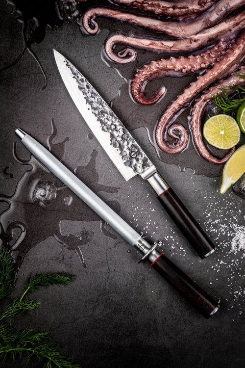 Voor het dagelijks onderhouden van je messen gebruik je de Forged Olive Diamanten aanzetstaal. Deze geeft jouw messen net weer even dat scherpe randje waardoor je gemakkelijk door vlees, vis of groenten kunt snijden.