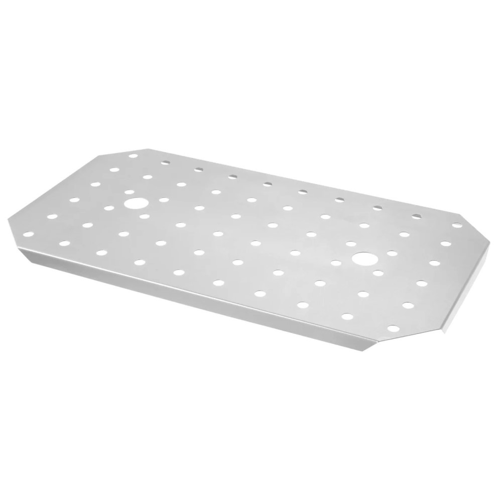 Met deze handige Geperforeerd Inzetrooster GN 1/1 RVS kun jij je mooie stukken vlees gemakkelijk en hygiënisch voorzien van een heerlijke rub zonder dat je vlees dus in het vrijgekomen vocht komt te liggen. Je legt het vlees op het rooster en bestrooit het met jouw favoriete kruidenrub. Na gebruik kun je hem gewoon in de vaatwasser zetten. Dit geperforeerd inzetrooster GN 1/1 RVS houdt voedsel boven de bodem van de GN bak. En is voorzien van 2 grote gaten voor eenvoudige verwijdering.