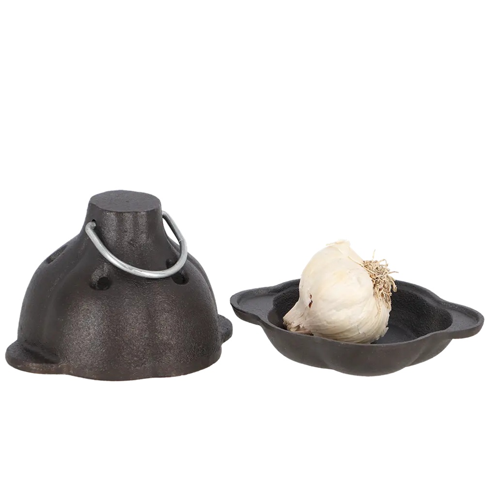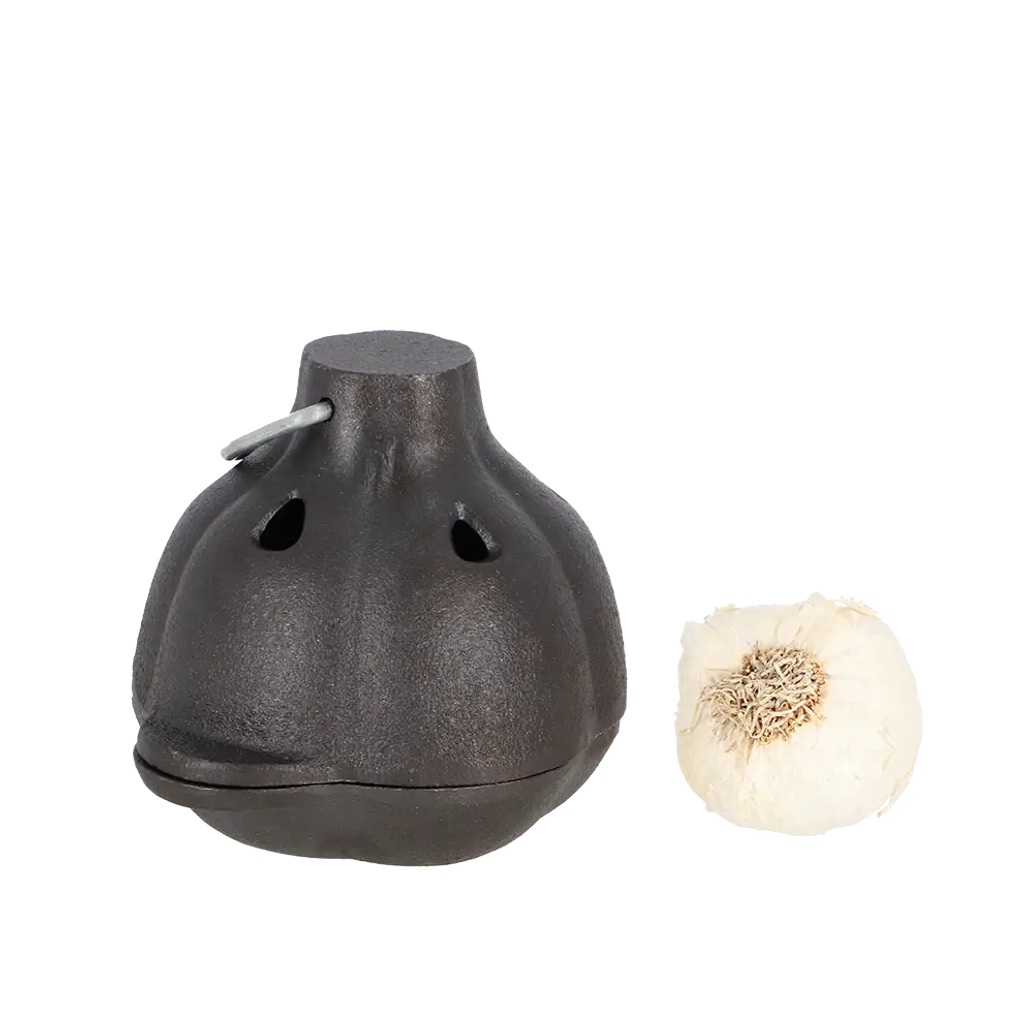 Met deze Gietijzeren Knoflookpoffer geef je een heerlijke zoete smaak aan de knoflook. Deze poffer heeft de vorm van een knoflook en biedt ruimte aan een hele knoflookbol. Dankzij het gietijzer, wordt de warmte goed verdeeld, waardoor de knoflook van alle kanten wordt verwarmd.