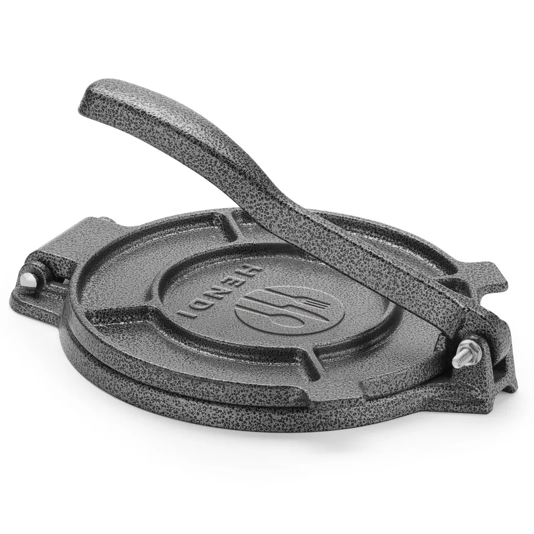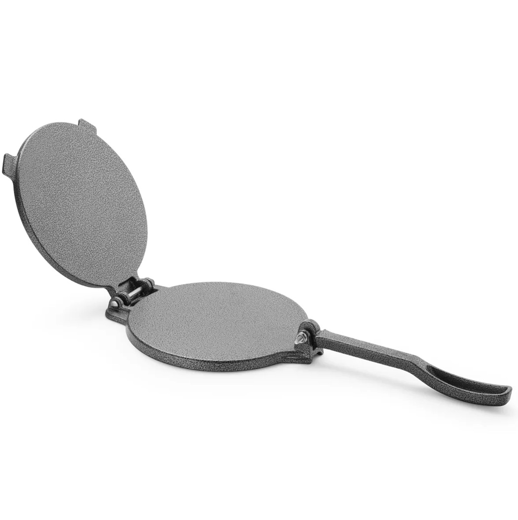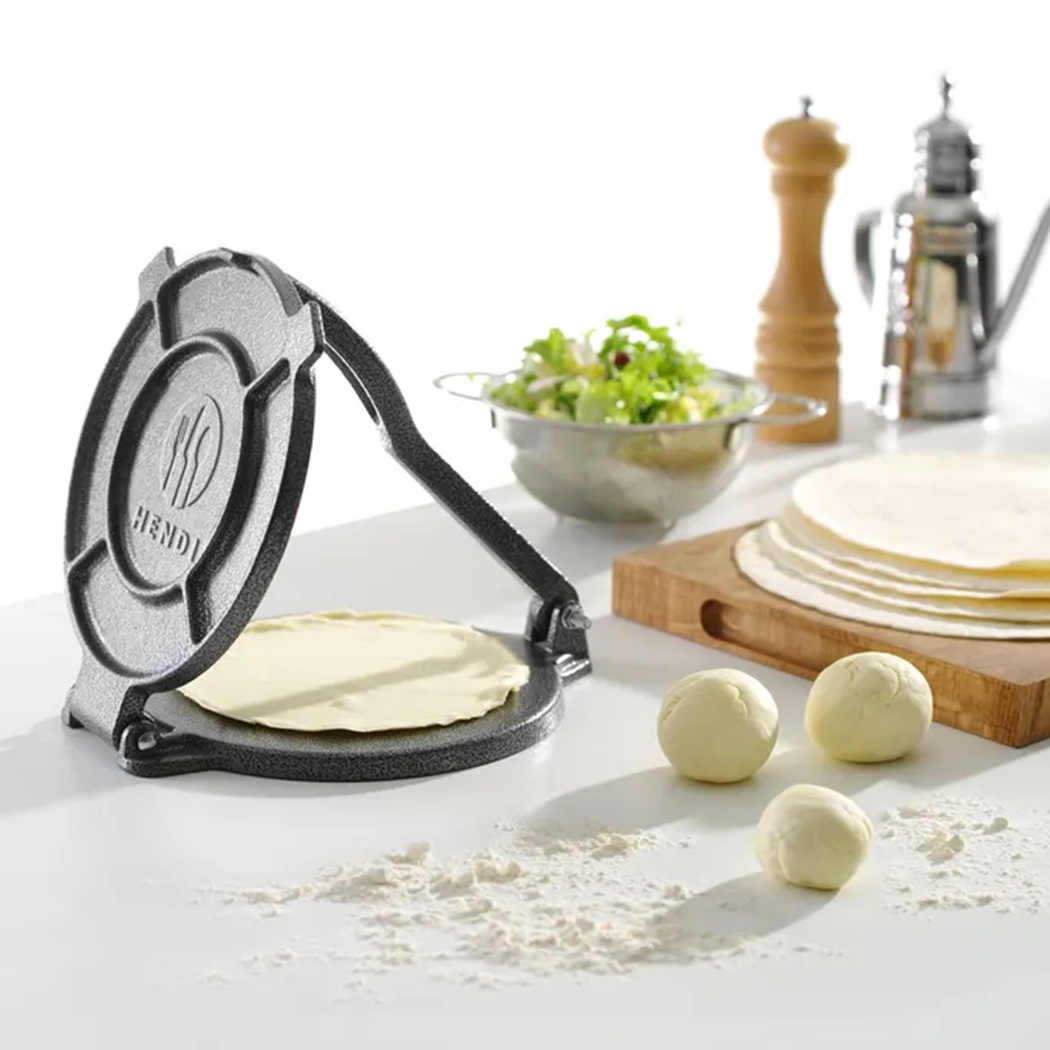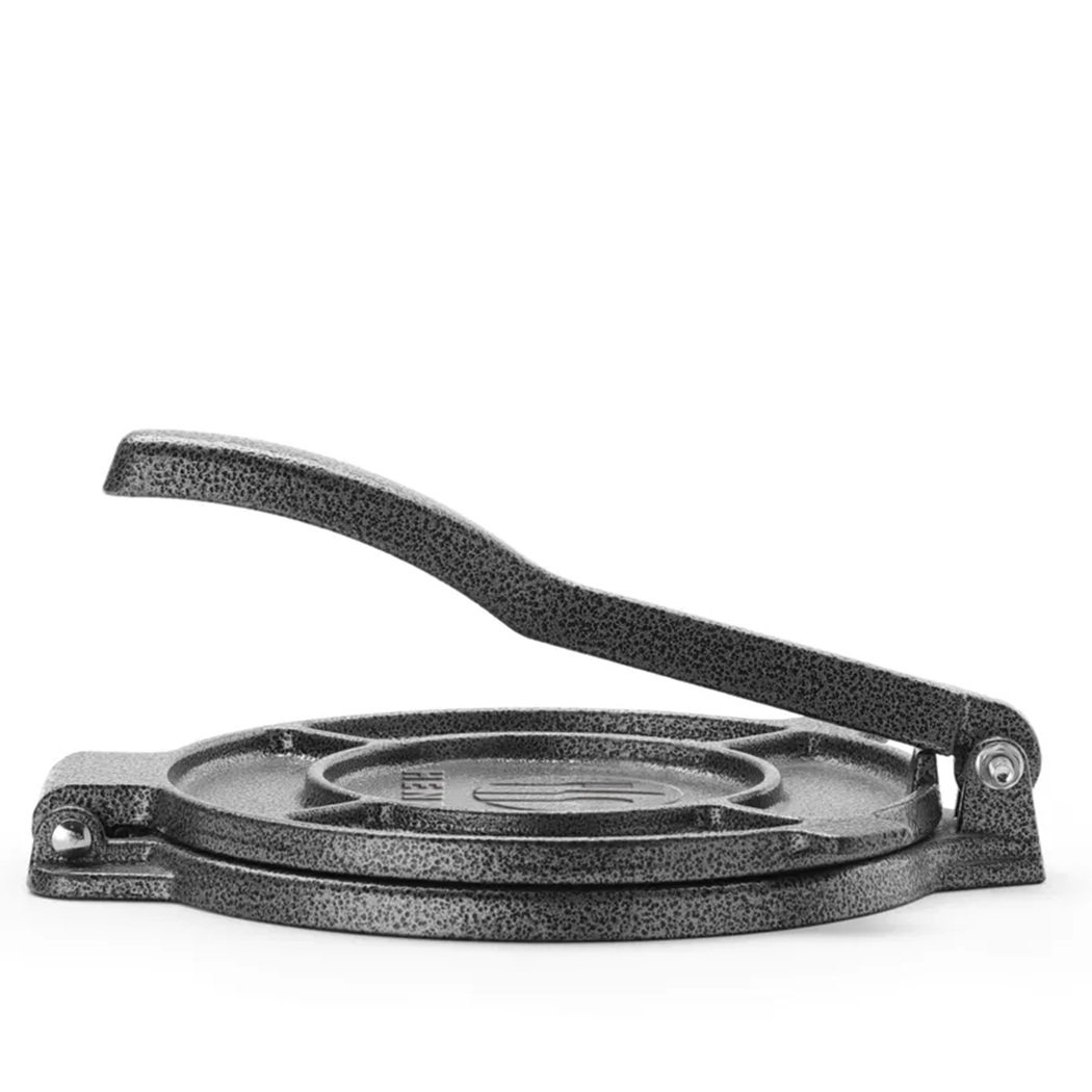 Je eigen tortilla’s maken…easy met deze Gietijzeren Tortillapers 20 cm. Maak je favoriete deeg (wij zijn fan van maismeel tortilla’s) en rol daar een bolletje van. Plaats deze in de pers en druk deze dicht. Door het hefboomeffect hoef je niet eens hard te drukken en kan je de tortilla zo dik of dun maken als je zelf wil. Als je bakpapier op beide zijde van de pers legt kan je de tortilla’s ook heel gemakkelijk verwijderen en heb je veel minder meel nodig. Deze gietijzeren pers heeft een doorsnede van 20 cm.