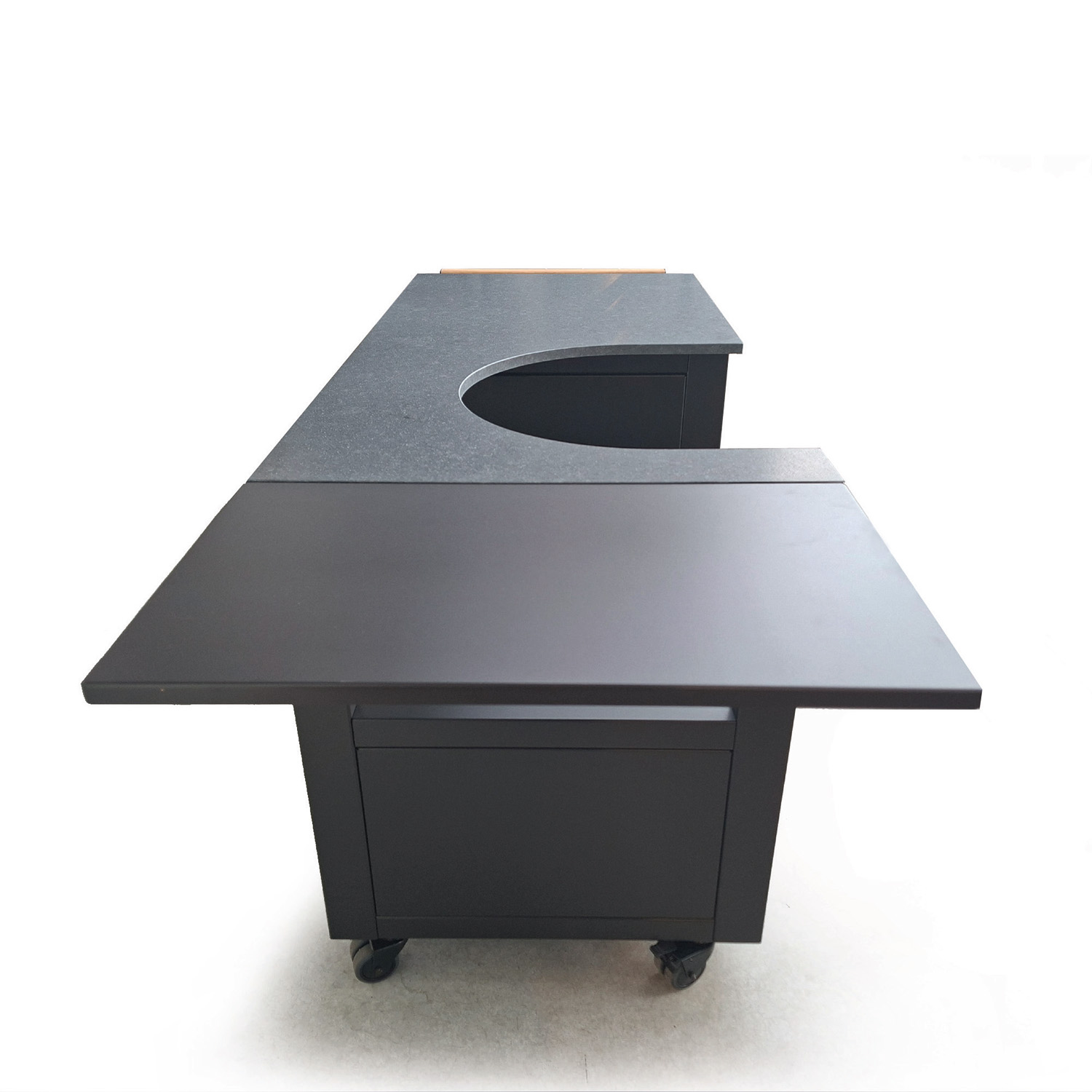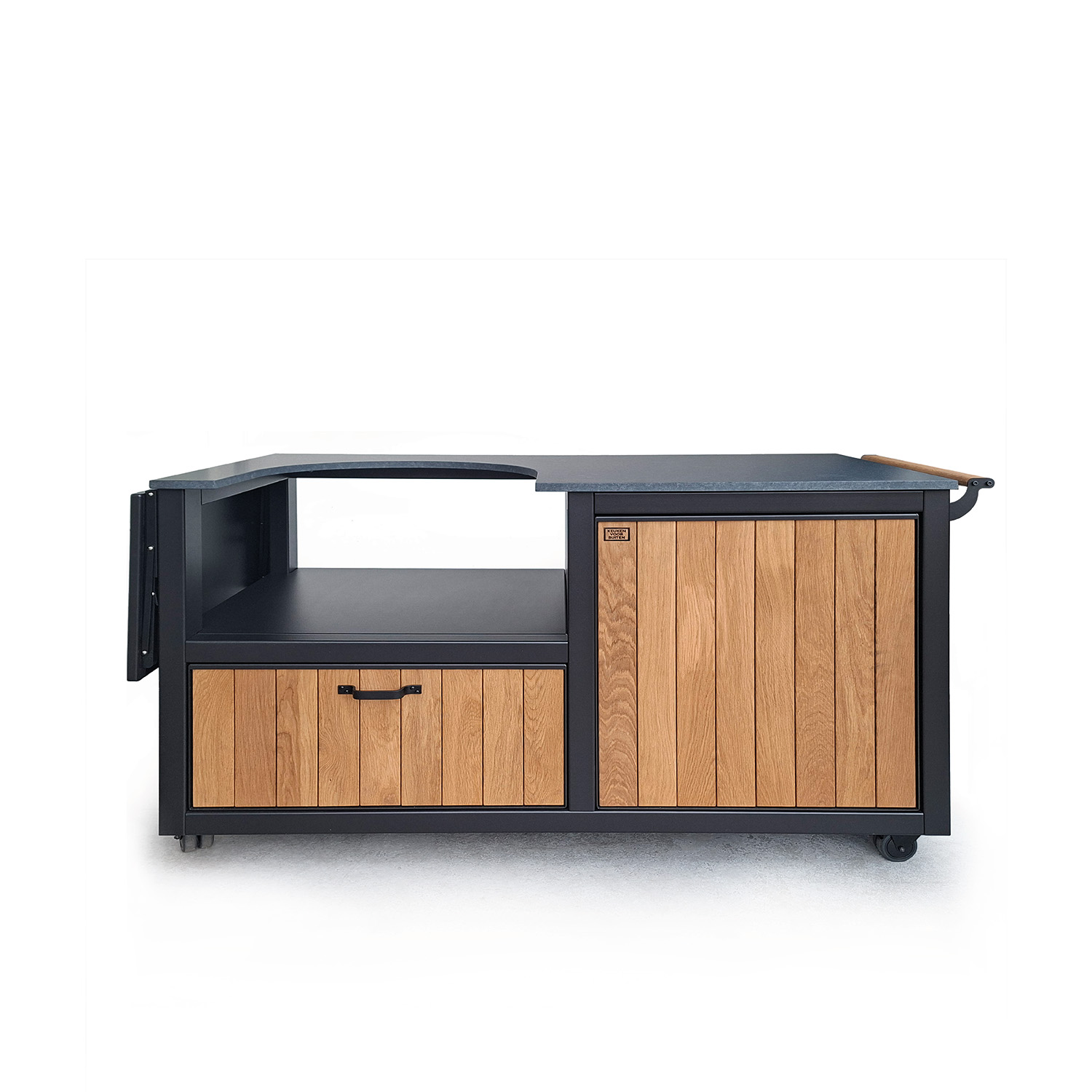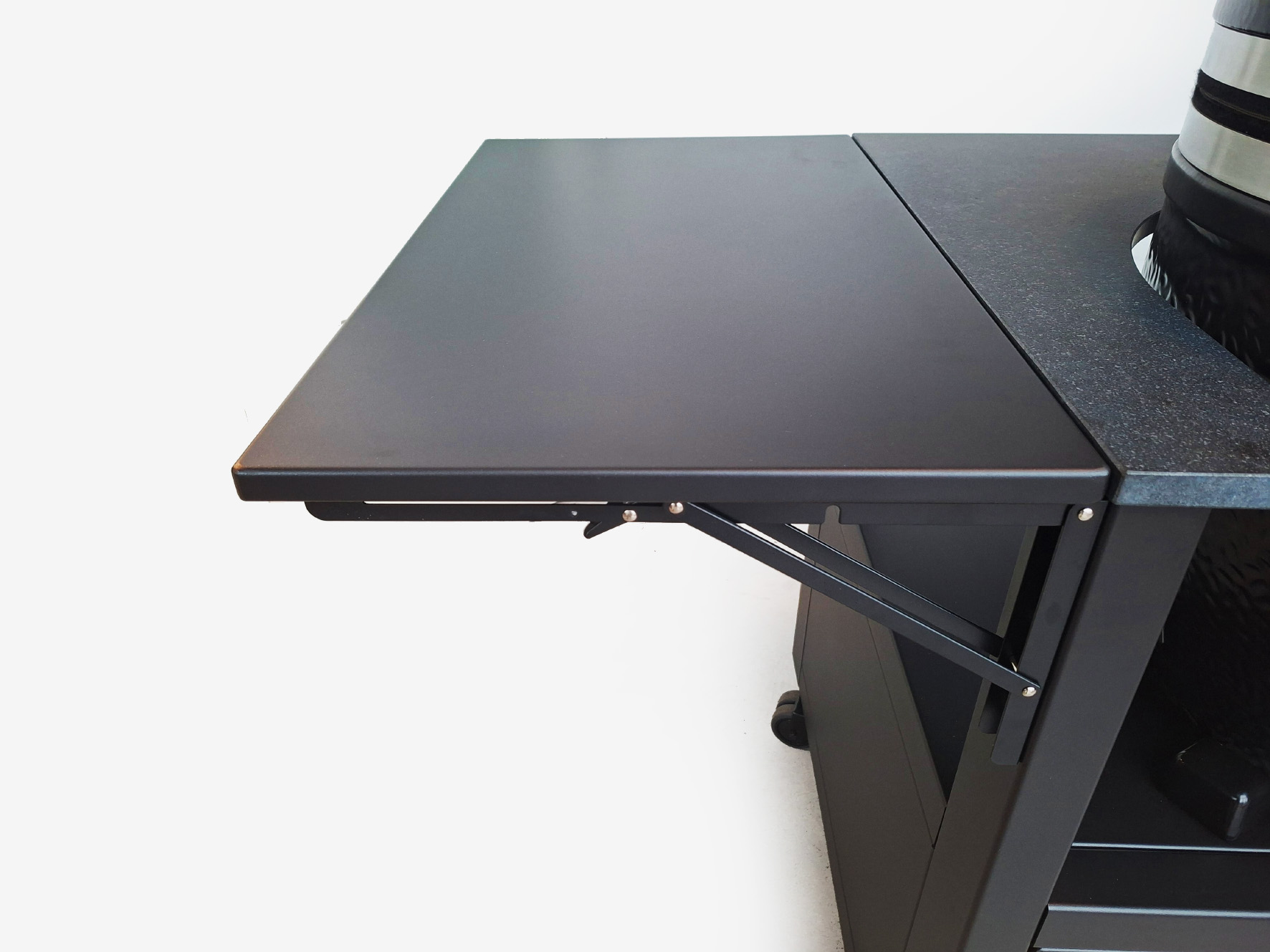 De inklapbare zijtafel aan de linkerzijde is een optie om toe te voegen aan de Keuken voor Buiten Model 1 en 2, en geeft een ideale extra werkruimte. De inklapbare zijtafel is van gepoedercoat staal gemaakt. De zijtafel is eenvoudig te monteren op de buitenkeukens van Keuken voor Buiten.