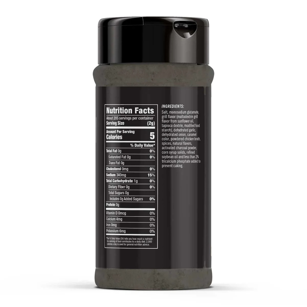Ingrediënten: Zout, mononatriumglutamaat, grillsmaak (maltodextrine grillsmaak uit zonnebloemolie, tapioca dextrine, gemodificeerd voedingszetmeel), gedroogde knoflook, gedroogde ui, karamelkleurstof, kippenbouillonpoeder, specerijen, natuurlijke smaakstoffen, actieve koolpoeder, vaste glucosestroop, geraffineerde sojaolie en minder dan 2% tricalciumfosfaat toegevoegd om klonteren te voorkomen.