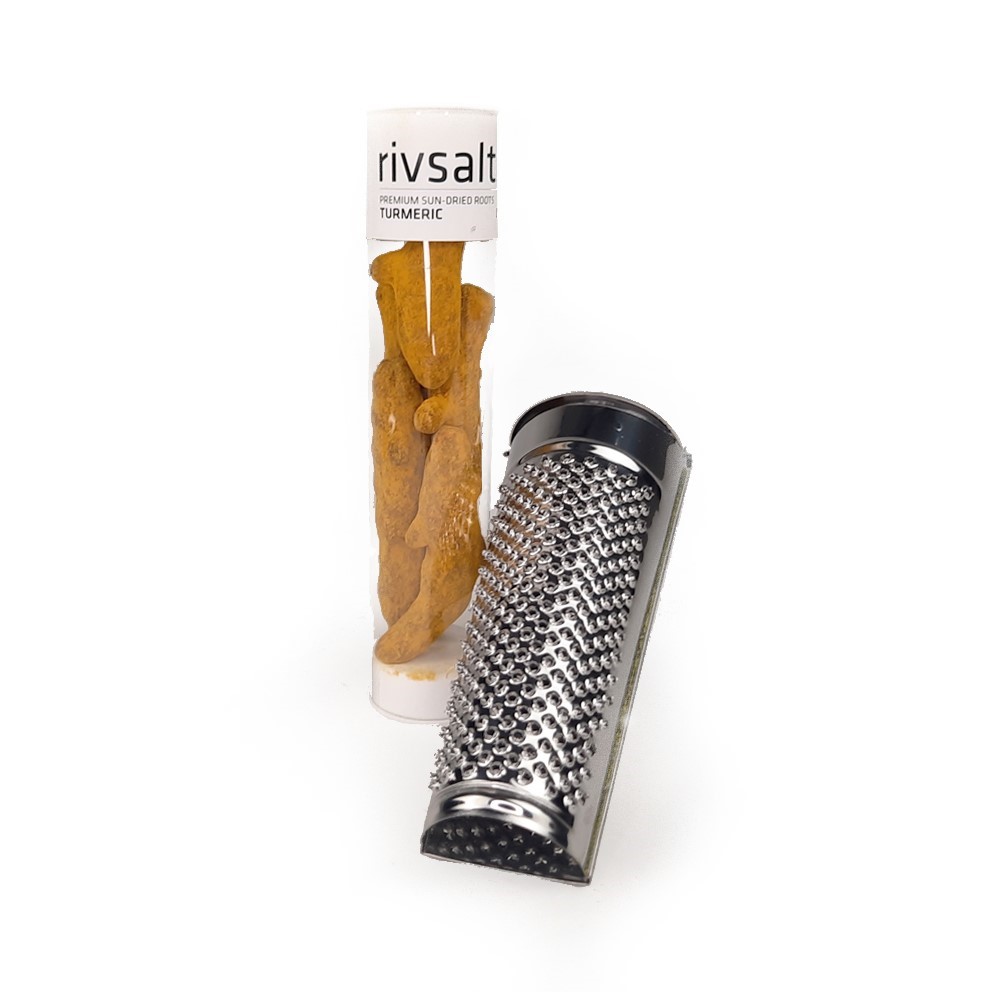 Deze giftset bestaat uit hele Kurkuma Wortel en een kruiden rasp. Met deze Kurkuma Wortel maak je de heerlijkste gerechten door de kruiden vers over of door je eten te raspen. Kurkuma behoort tot de familie Zingiberaceae en komt uit de staat Maharashtra in India. Het wordt gebruikt in veel van dezelfde gerechten als GINGER (gember) en deze zongedroogde wortels vullen elkaar uitstekend aan. Ze hebben opmerkelijke gezondheidsvoordelen – mogelijk nog meer samen met geraspte PEPPER. Voor wat extra natuurlijke kleur en pit tijdens het koken, rasp je de gedroogde wortels in een klassieke curry of een heerlijke Caribische zoete aardappelsoep. Of waarom niet raspen en roeren door een verse cocktail of je favoriete smoothie?