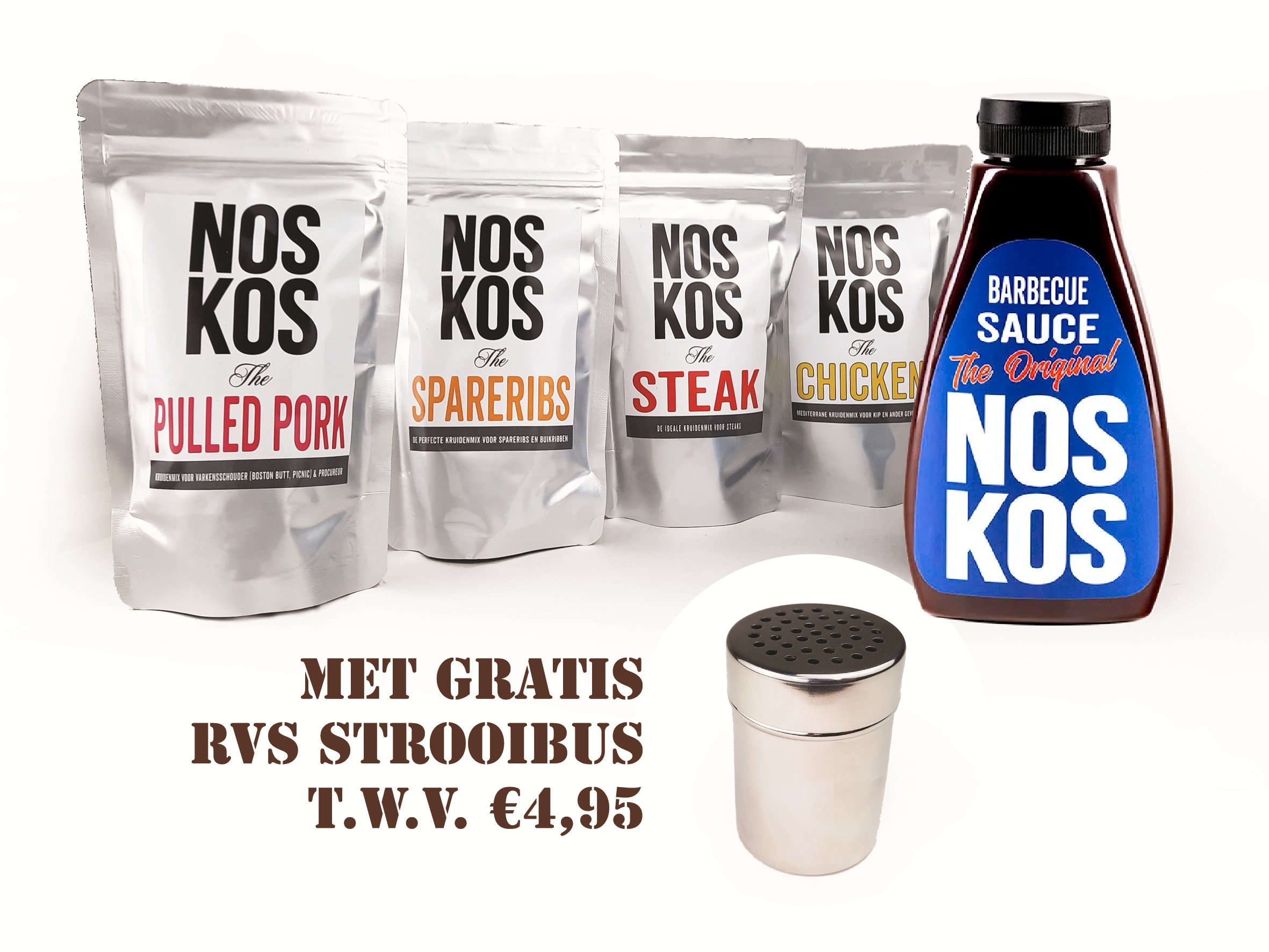 NOSKOS, voor de meeste barbecue liefhebbers de inspiratie om meer te gaan barbecueën en zijn heerlijke recepten na te maken. Om je hiermee goed op weg te helpen hebben we nu NOSKOS The Best Of + GRATIS RVS Kruiden Strooibus. Deze Strooibus is ideaal om zijn rubs gelijkmatig te verdelen over je gerecht.