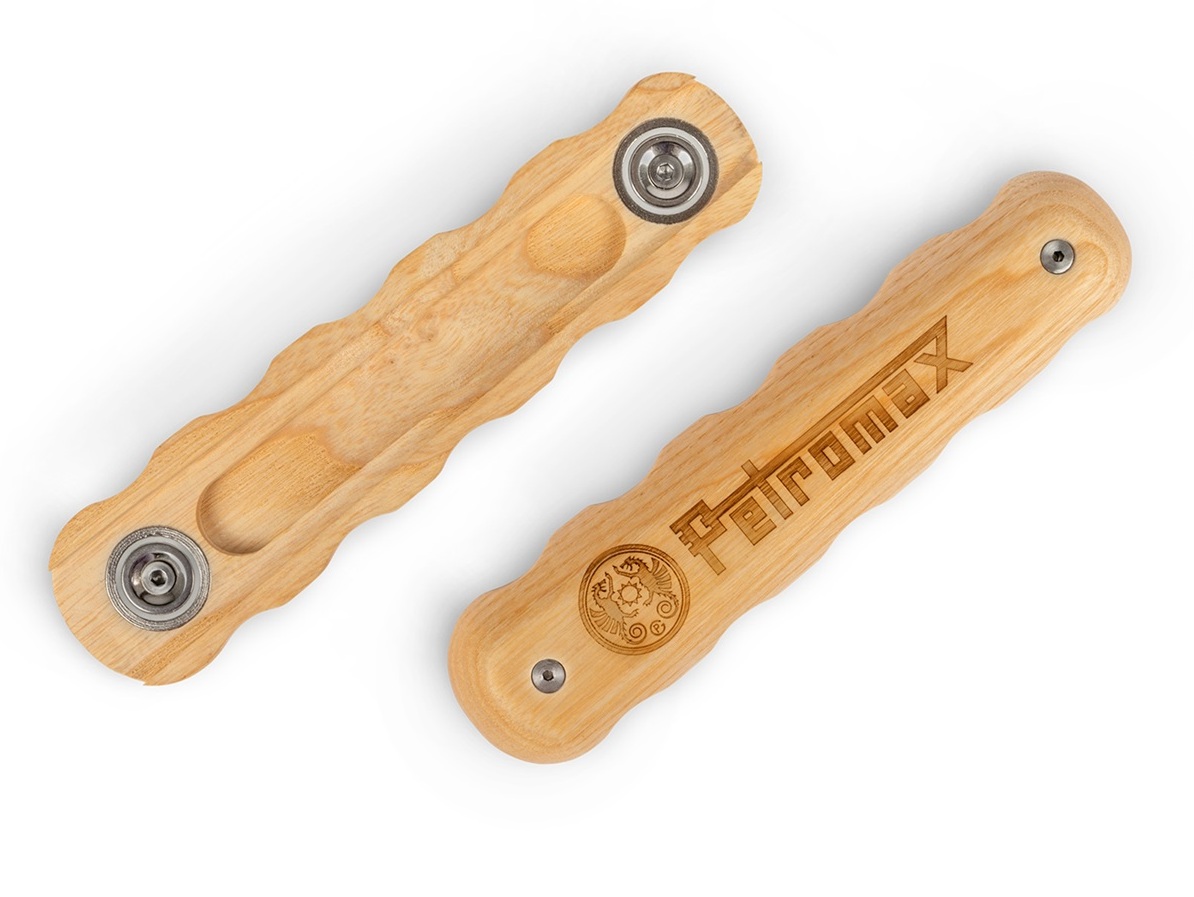 Het Petromax Handvat voor Smeedijzeren Pan is een magnetische houten handvat voor de smeedijzeren pannen. Het houten handvat kan met één hand aan het handvat van de pan worden bevestigd door middel van de magneetsluiting. Zo heeft u altijd één hand vrij en kunt u zich volledig aan uw kookbeleving wijden. De schalen van geolied hout omsluiten de handgreep van de pan en stopt de warmte geleiding. Een veilige manier om vlees, vis en groenten te bereiden. Welke van je Petromax gesmede pannen je ook gebruikt, de houten handgreep is ontworpen voor elke maat.