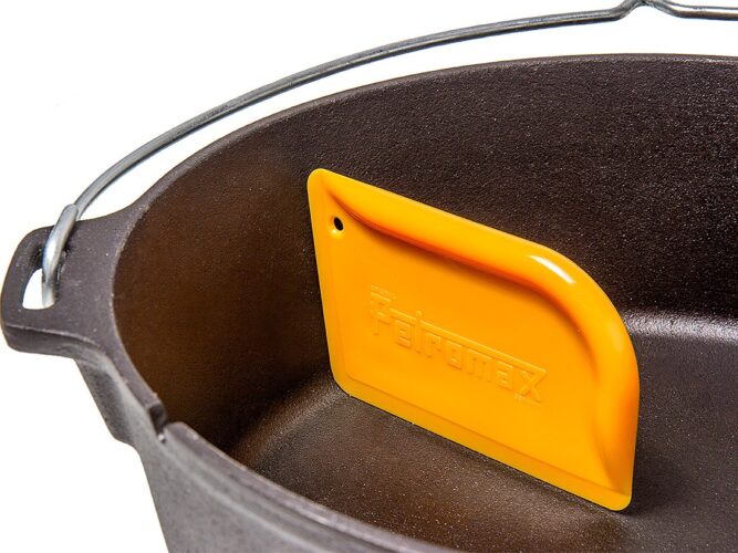 Deze Petromax Scraper is geschikt voor alle skillets en Dutch ovens of irons. Door de ronding kom je gemakkelijk in alle hoekjes. De schraper is hittebestendig tot 120 °C. Gietijzer is perfect voor outdoor cooking en voor het gebruik op de barbecue. De seasoning die op gietijzeren producten zit zorgt ervoor dat je een natuurlijke anti aanbak laag creëert. Daarnaast verhinderd seasoning ook roestvorming en zorgt ervoor dat je een pan of pot hebt die generaties mee zal gaan. Gietijzer vergt wel onderhoudt. Het gietijzer moet gevoed worden met olie of vet om uitdroging en roest tegen te gaan. Het advies is ook om na gebruik je gietijzer schoon te maken en in te sprayen met barbecue spray voordat je het weg zet tot volgend gebruik. Op deze manier heb je langer plezier en profijt van je gietijzer!