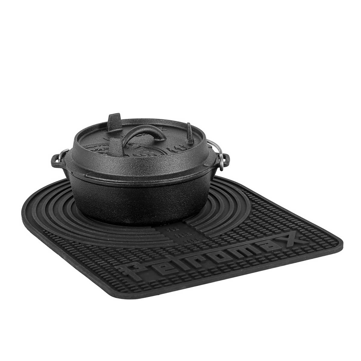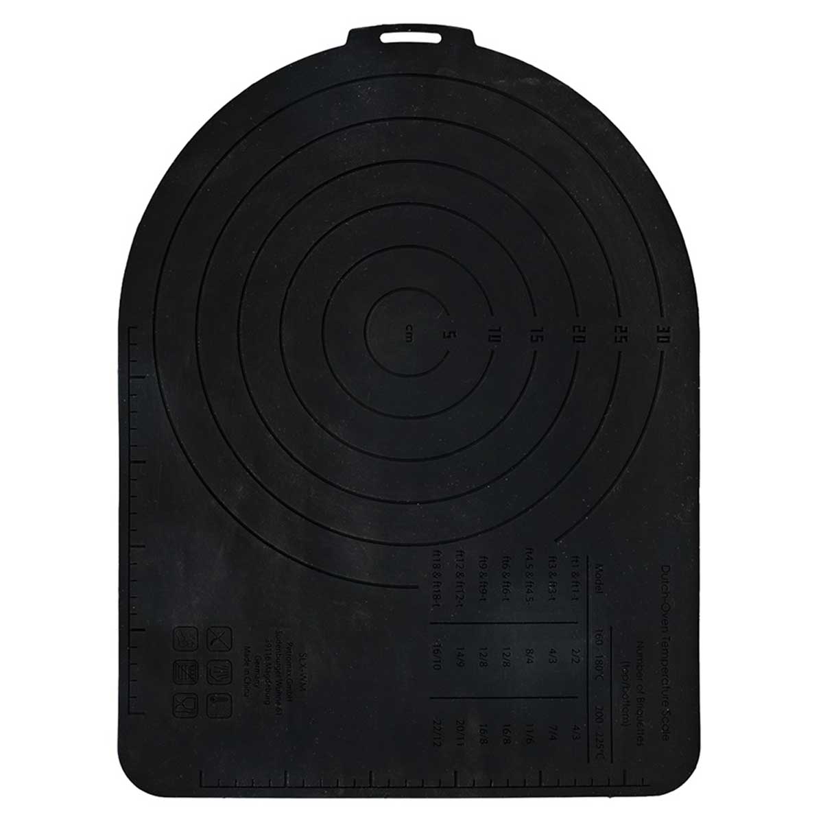 De Petromax Siliconenmat is een robuuste en veelzijdige onderzetter en werkmat. De mat is zeer koude- en hittebestendig ( -40°C tot +230°C) en aan beide zijden te gebruiken. De ene zijde is ideaal als onderzetten voor Dutch Ovens (zowel met als zonder voetjes) en ander pannen en skillets. De ander zijde is handig voor onder meer het uitrollen van deeg. Deze zijde bevat informatie over het aantal te gebruiken briketten voor het bereiken van de optimaal warmte voor de Dutch Oven. De ingesneden circelvormen bieden een leidraad om eenvoudig je deeg op de gewenste grootte te krijgen. De mat heeft een praktische ophanglus en is zo flexibel dat het makkelijk kan worden opgerold. De Petromax Silionenmat is de uitgelezen kook- en bakhulp voor zowel binnen als buiten.