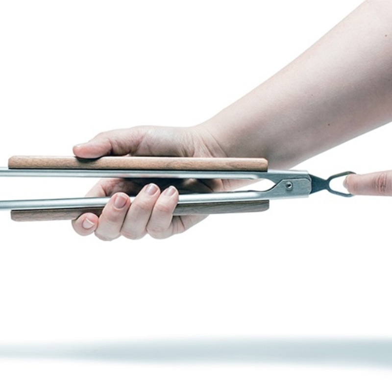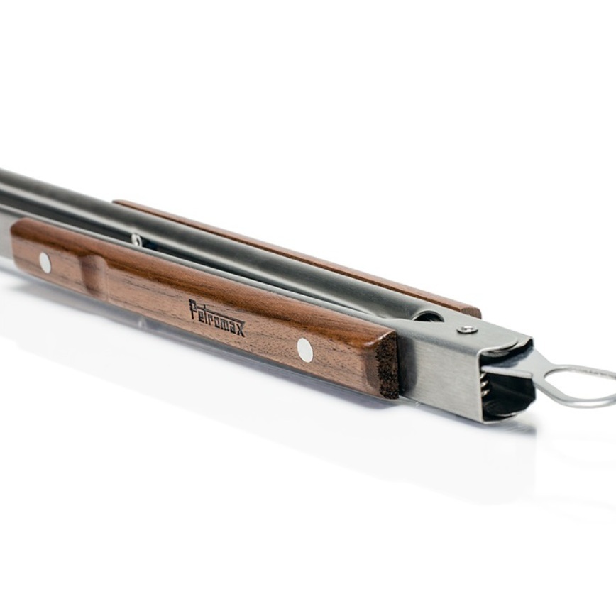 De Petromax Tang is onmisbaar gereedschap om buiten lekker te kunnen grillen en koken. Om veilig te koken op een hete grill is een goede tang noodzakelijk. De hoogwaardige tang van geborsteld roestvrij staal ligt dankzij de fijne handgreep goed in de hand. Dankzij de gebogen tang-kop, pak je vlees en groenten gemakkelijk vast en plaats je ze naar wens op de juiste plek. Door het handige vergrendelmechanisme aan de achterzijde vergrendel je de tang gemakkelijk. Tevens hang je hem na gebruik gemakkelijk op aan de ring van de vergrendeling. De Petromax BBQ tang is beschikbaar in twee verschillende maten. De grootste maat heeft een lengte van 54 centimeter en de kleine is 41 centimeter.