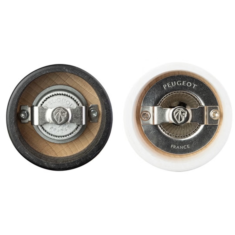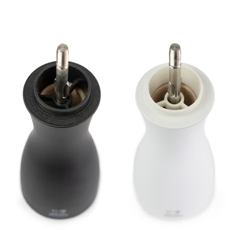 Het Peugeot Tahiti peper- en zoutmolen in contrasterend wit en zwart, is herkenbaar aan zijn mooie ranke vormen. Dit duo molens van 15 cm, volledig uit hout, herbergt het Peugeot-maalwerk met levenslange garantie. De sierknop die zich bovenop de molens bevindt, laat je toe om de maalgraad naar wens in te stellen: hoe vaster hij aangedraaid is, hoe fijner de maalgraad. De klassieke tinten passen perfect bij de mooiste hedendaagse tafels. De molens zijn voorzien van een gepatenteerd u-Select-systeem met instelbare maalgraad.