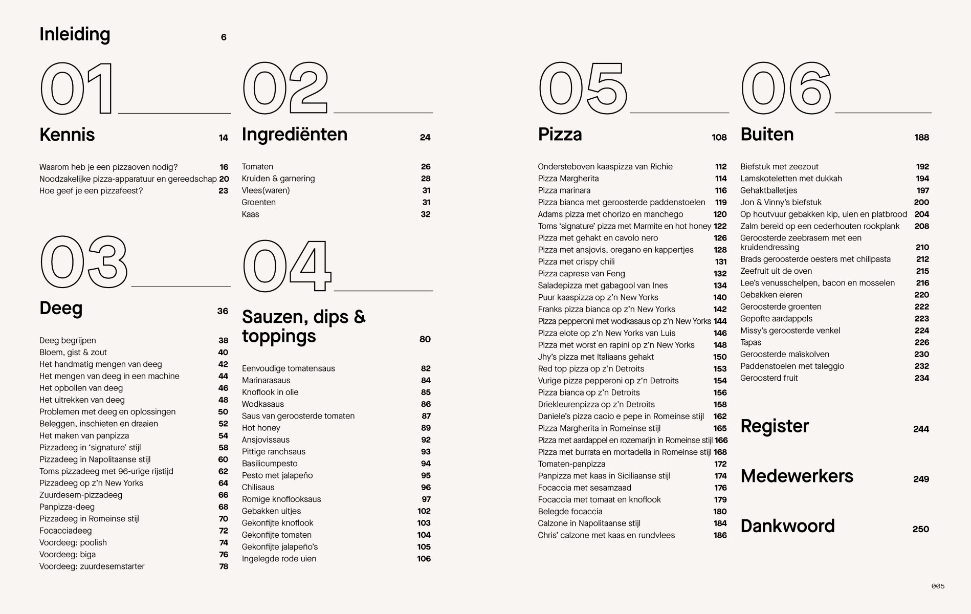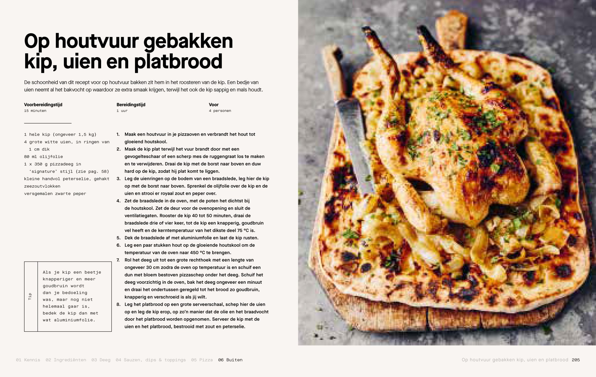 Last but not least: pizza bak je in een pizzaoven, het liefst in een buitenoven (maar een pizzaoven voor binnenshuis mag natuurlijk ook). De pizzaoven neemt in populariteit enorm toe: logisch want je kan er nog veel meer mee dan alleen pizza bakken. Pizza Volume 01 geeft dan ook als toegift 20 outdoor cooking-recepten: van op houtvuur gebakken kip, zalm bereid op een cederhouten rookplank tot en met geroosterde groenten en fruit.