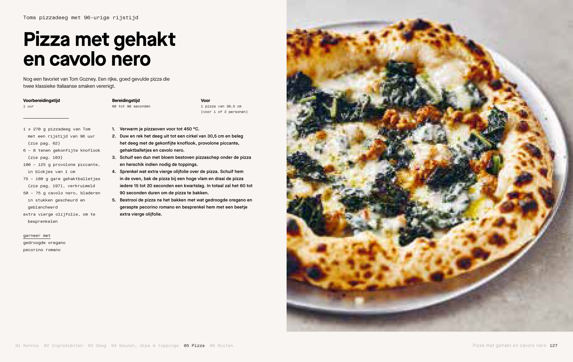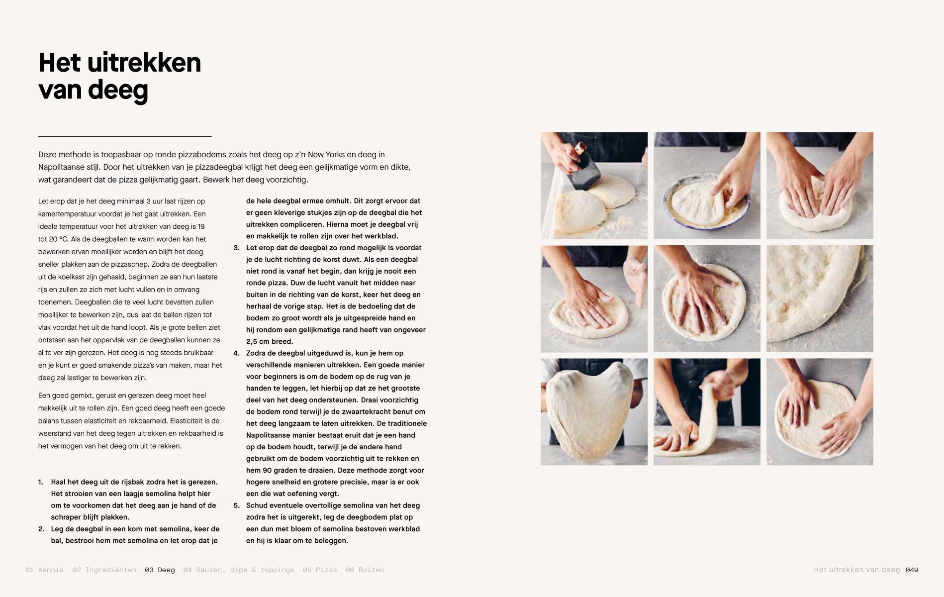 Leer perfecte pizza’s maken met Pizza Volume 01. Begin bij het begin en maak echt goed deeg. Proef het verschil tussen Napolitaans en Siciliaans pizzadeeg; maak voordeeg zoals poolish (voor een New York-style pizza) of maak een starter voor een luchtige zuurdesempizza. Kneed je deeg met de hand of machine en versta de kunst van het opbollen en uitrekken van deeg.