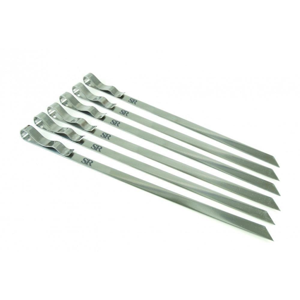 Spiezen RVS 43 cm voor saté, gehakt, vis of groenten. Speciale 1,0 cm brede spiezen zorgen ervoor dat het voedsel niet draait wanneer de spiezen worden gekeerd, wat een veel voorkomende irritatie is bij de traditionele ronde spiezen. Set bestaande uit 6 RVS Kebab spiezen van 45 cm met een breedte van 1,0 cm