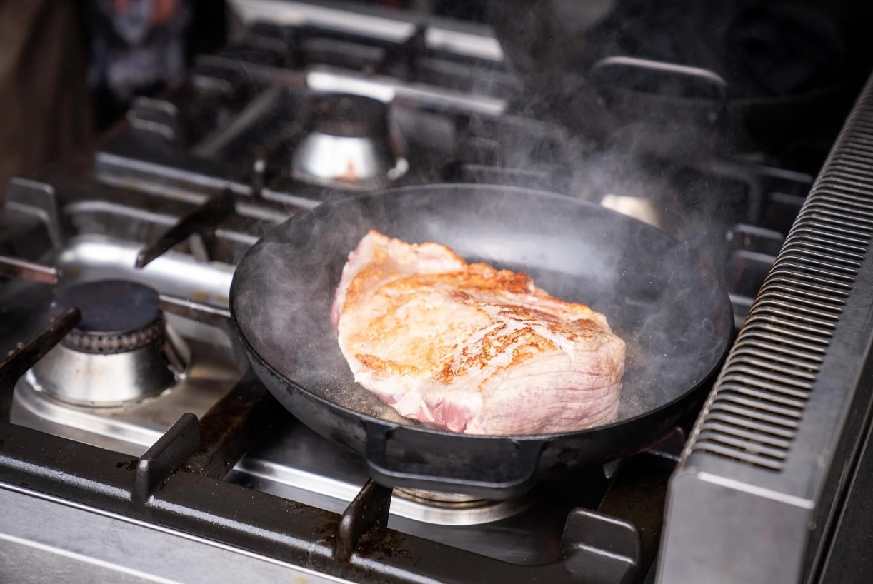 • Stralingshitte, een groot stuk vlees wordt beter gaar in traditioneel gietijzer.