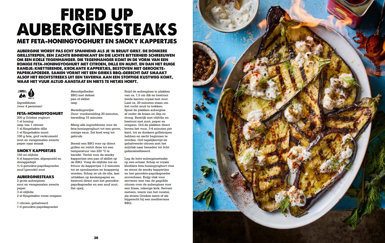 In dit 19e boek draait alles om koken boven vuur en rook, met zon in je hoofd en goede ingrediënten in je handen. Denk aan tapas die knetteren op het rooster, pulpo boven gloeiende kolen, sappige souvlaki en pizza’s met een bodem die kraakt als je ’m aansnijdt. Open vuur aan zee, geurige kruiden, goede olijfolie en houtrook vormen de basis van gerechten die je wilt delen aan lange tafels.