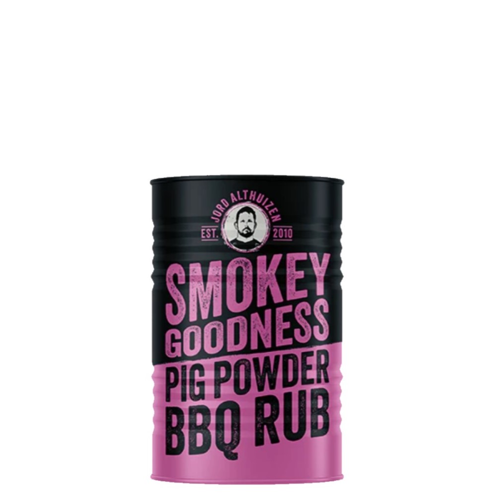 Met deze Smokey Goodness Pig Powder Rub transformeer jij ieder stuk varkensvlees in fine dining. Met een mooi zoetje van de kaneel en venkel en een goede dosis pit van de chipotle peper is deze BBQ kruidenrub subtiel in balans en een heerlijke smaakcombinatie met varkensvlees. Gooi een royale hoeveelheid BBQ kruiden op het vlees en wrijf het goed in voordat je het op de BBQ legt en heaven awaits you. Dit is de BBQ kruidenmix voor de bereiding van o.a. de lekkerste pulled pork en spare ribs.