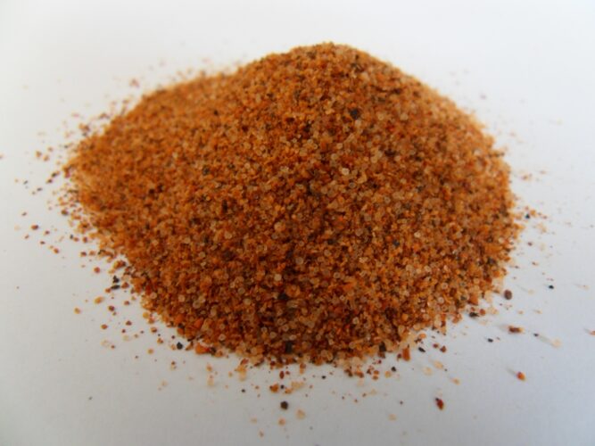 Ingrediënten: zout, peper, suiker, ui, chilipoeder, knoflook, paprika