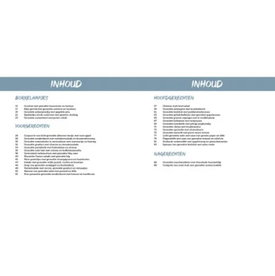 “In een kookboek vindt men recepten voor de bereiding van voedsel, en informatie over het bereiden van voedsel in het algemeen.”