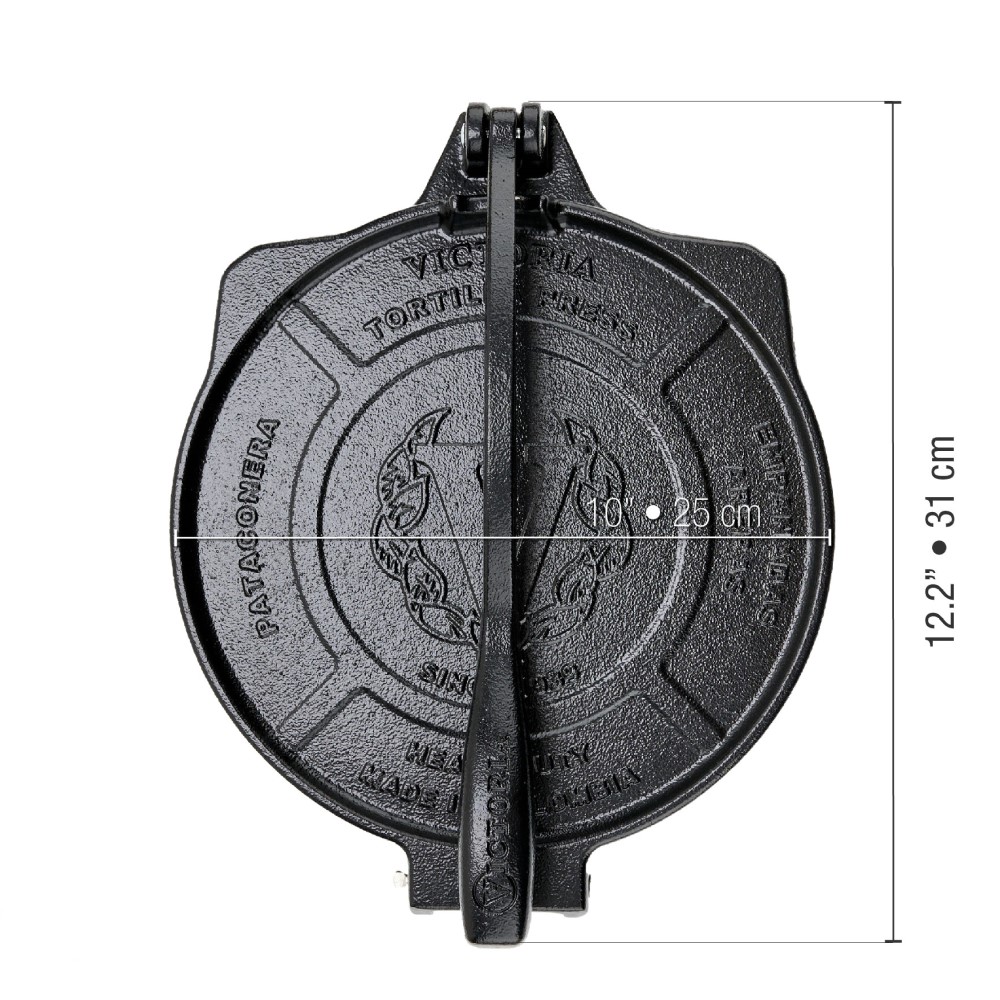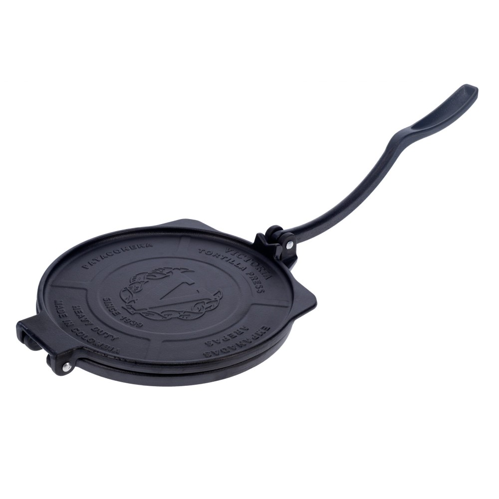 Deze Victoria Tortillapers van gietijzer is superieur aan traditioneel persen omdat het een betere duurzaamheid biedt en langer meegaat dan conventionele tortillapersen. De Victoria Commercial-Grade Cast-Iron TortillaPress is gebouwd van hoogwaardig HD-ijzer met de kok in gedachten. Het beschikt over een versterkt ontwerp met speciaal ontworpen platen die beknelling voorkomen en een verbeterde basis en met een handgreep voor betere weerstand. Deze duurzame pers heeft een lange inklapbare handgreep waarmee bij elk gebruik het perfecte tortillaformaat kan worden gecreëerd. De pers is pre-seasoned met 100% niet-GMO, koosjer-gecertificeerde lijnzaadolie. Met een paar eenvoudige stappen blijft hij in topvorm en is hij klaar om heerlijke maïs- en bloemtortilla’s, arepas, burrito’s, quesadilla’s, patacones en nog veel meer te maken! De veelzijdige gietijzeren tortillapers van Victoria is PTFE- en PFOA-vrij en bevat geen synthetische chemicaliën. Het is verkrijgbaar in meerdere maten en gaat jarenlang mee als je verse tortilla’s maakt.