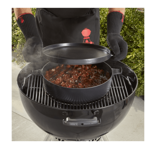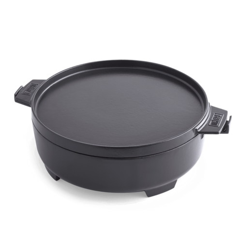 Deze Weber GBS Dutch Oven Duo biedt eindeloze mogelijkheden voor op de barbecue. De gietijzeren Dutch Oven van 6,8 liter biedt een gelijkmatige warmteverdeling en -behoud. Daardoor ideaal voor malse braadstukken en smakelijke soepen en stoofschotels. Het deksel met dubbele functie kan worden gebruikt als platte bakplaat om broodjes te roosteren of kippenborst en groente perfect te garen. Dankzij de porselein-geëmailleerde finish is de Dutch Oven makkelijk schoon te maken. De twee onderdelen kunnen perfect op elkaar gestapeld worden waardoor deze plaats besparend opgeborgen kan worden.