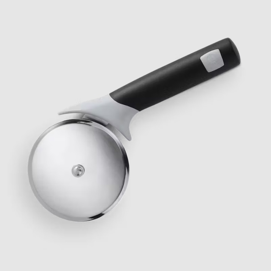 Zodra uw mooi belegde pizza van de barbecue komt, snijdt u elke pizzapunt punt even groot. De pizzasnijder heeft een extra groot wiel om door pizza’s met dikke en dunne korst te snijden zonder dat uw meesterwerk een rommeltje wordt. De duimbeschermer houdt de vingers weg van het wiel voor extra veiligheid. De zachte en comfortabele antislip greep biedt een stevige grip, zelfs aan natte handen.